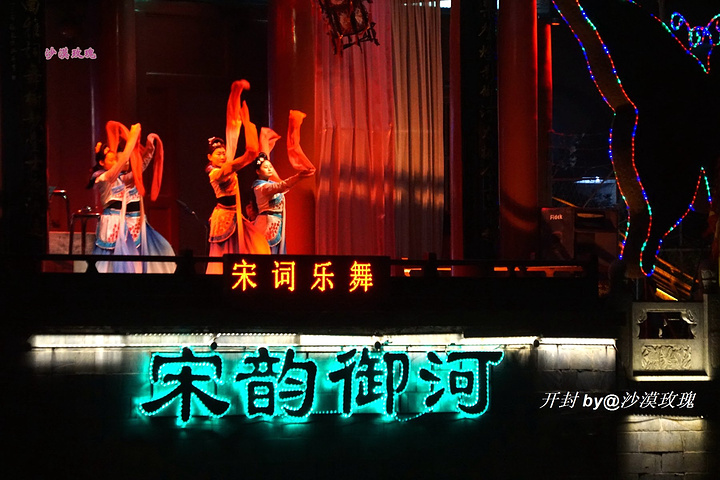 夜晚的开封城,少了几分白天的喧闹,多了几分静谧的美。从包公祠码头登船,夜游御河,一时间仿佛穿越千年,回到了盛世时的大宋王朝……一颗心也随着御河的水波潋滟,沉醉在两岸的流光溢彩中。