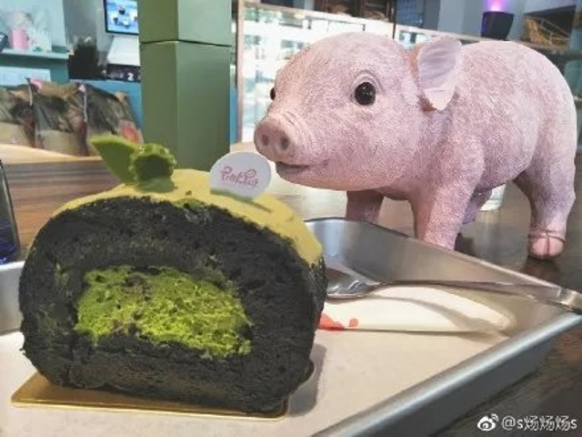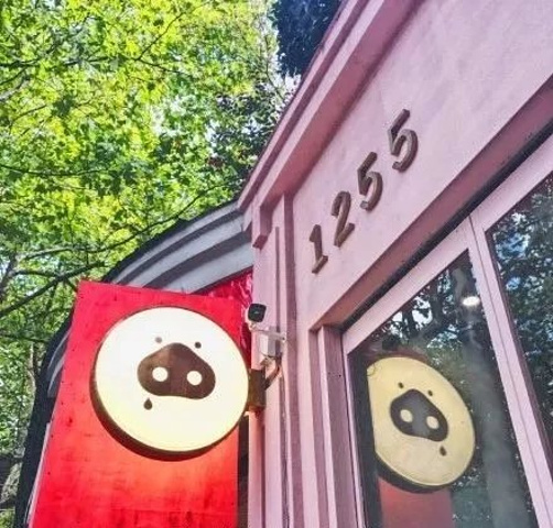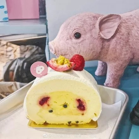 店里有很多“粉猪”元素,连打包袋都很萌!还有各色店里的周边产品都可以供顾客购买带回家。