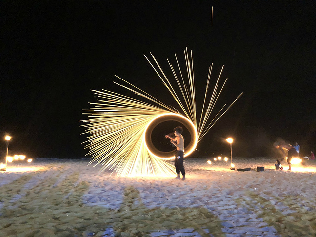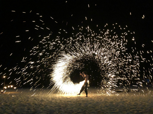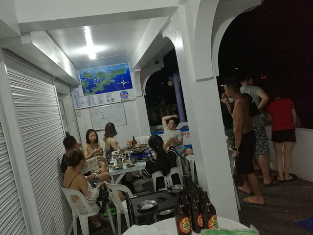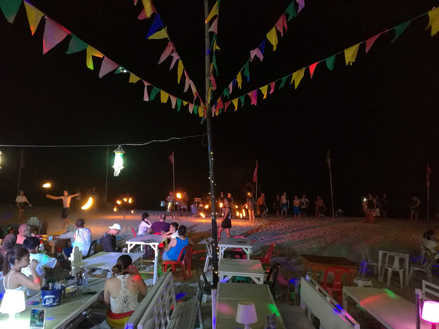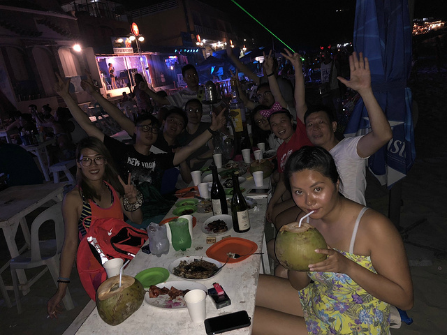 WHITE BEACH的餐厅有三个特色:焰火等各种表演、人妖小哥哥和沙滩就餐。这几特色都是为了吸引食客,我们选的这一家,在餐厅里面有各种表演,在沙滩上还有焰火表演,吃的东西大同小异,不外乎烧烤、海鲜等。不过大家都玩得很high,终于毕业了。