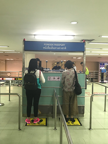 外国护照过关处,右边正在过关的就是我妈妈了、