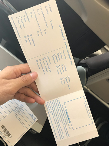 飞机上空姐会发入境卡,按照自己的情况填好就可以了。过关的时候海关会撕下一联,还有一联记得要保存好,出关的时候需要收回的,我在出关的时候旁边一个人就找不到入境卡,然后傻傻的站在那里不知道怎么办。