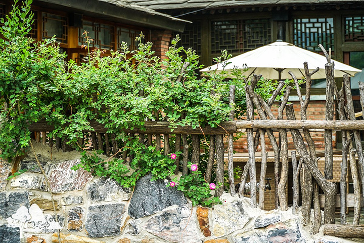 去快活林吃早饭的路上路过的小院,同我们住的桃叶谷是同样风格设计,旁边的狗狗超有爱的在我们每次路过的时候都会走出来接我们,超级萌