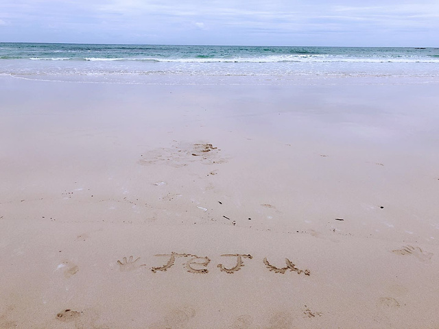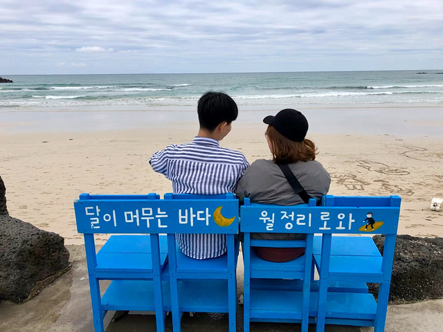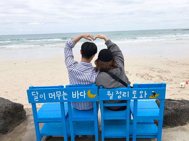 接下来就是去门口的海滩玩耍了。济州岛有各种海滩,月丁里海滩算是最美沙滩之一了。