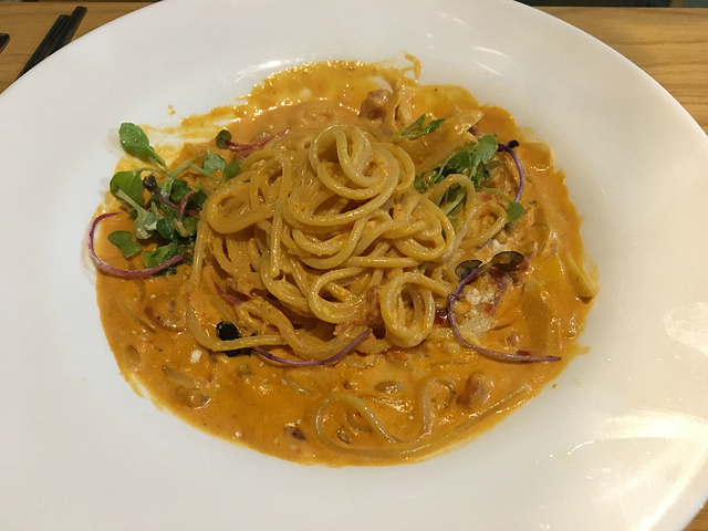 老婆吃了意式面,我吃了海鲜面。都不记得餐馆叫什么名字了。