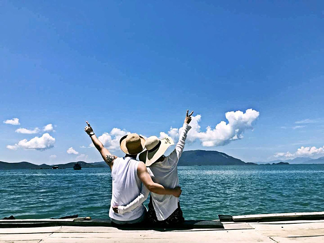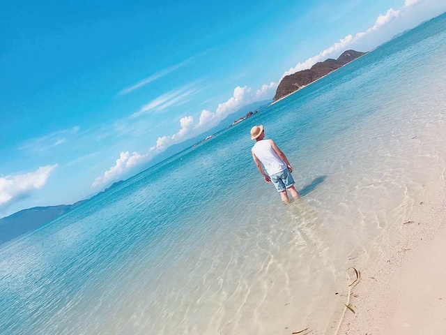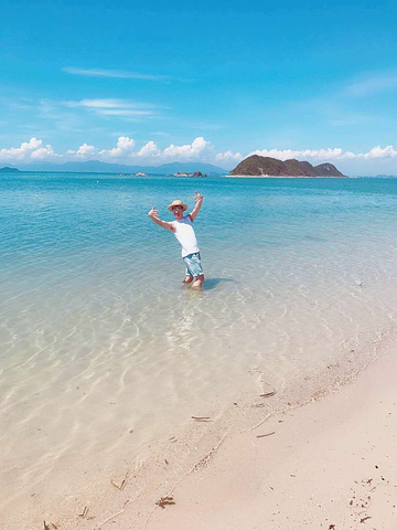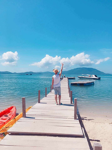 吃过早餐后办理了退房手续,拿好行李导游很快就进来接我们了,一个很朴实的越南姑娘,我们直接上了旅游巴士。大巴车从芽庄市区一直往北开,中途导游用流利的英语跟我们交流聊天和介绍碧岛上的情况,大约一个小时的车程,我们到达碧岛所在的码头然后换乘快艇,大概做10多分钟左右就到达碧岛了。导游先会带我们识记午饭的桌子,约定11:30在这里用餐,然后我们就自由活动拍照去了。到达碧岛后感觉今天看见的海水要比昨天在芽庄海滩上看见的海水强多了,跟三亚的海水差不多啦~外景还是不错的,因为实在是太热了,拍了几张照片后也没在外面玩多久就找地方避暑去了。。
