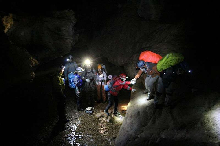 洞里有各种小动物,比如在洞里织出晶莹挂丝的萤火虫,倒挂在岩壁上的棕色蝙蝠,还有努力攀爬的“长腿”蚰蜒,增添了途中的乐趣。