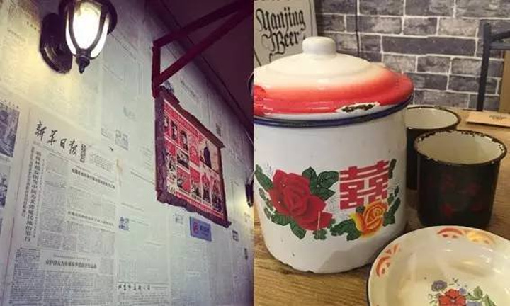 他们家整体就是一种怀旧的风格,满墙的老报纸,如果能在上面找到一星半点的回忆,那就证明您也是有年头了哈哈哈!杯子盘子都是搪瓷的,感觉回到了小时候门口的小板凳上,端着个搪瓷小碗……