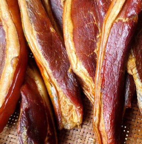 腌肉也是侗族特色美食,做法与腌鱼相似,用肥瘦掺半的猪肉,切成块状,放入瓷坛腌制两个月,即可取出炒吃,在炒好的腌肉上,撒上绿色的葱花,味道酸辣鲜美,开胃,极具诱惑力。