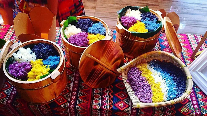 五色糯米饭五彩缤纷,鲜艳诱人,气味清香,天然色素对人体有益无害。