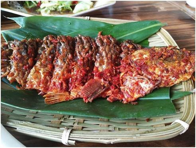腌鱼是黔东南侗族特色美食。用稻田里捞上来的新鲜田鱼,处理过后,放入辣椒面、盐、适量白酒、白糖等调料,再与蒸熟且放凉后的糯米饭混合在一起,放入瓷坛中密封腌制,两个月左右,腌鱼变酸入味,则可取出用菜油煎食,味道酸辣可口,肉质细嫩,极其美味。