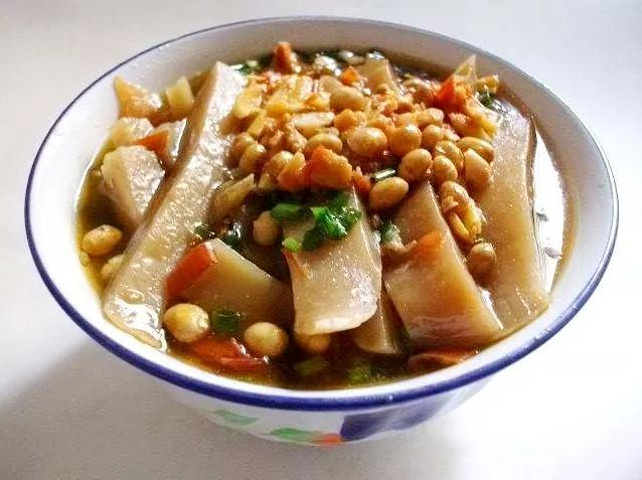 腌汤闻起来臭,吃起却很美味。腌汤可口、开胃,对肠胃特别好,它还具有杀菌、消暑的功能。