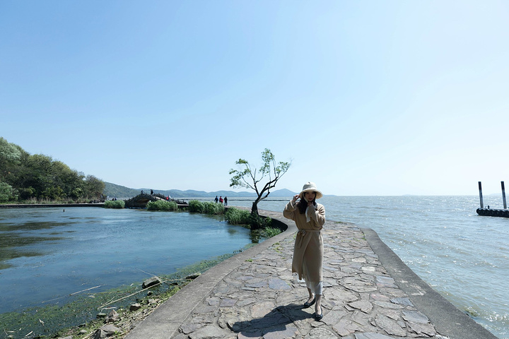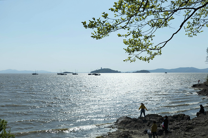 近几年国内共享单车的普及极大地改变了出行方式,四人决定选择骑行前往。晴朗无云的太湖边风有点凛冽,4公里的环湖路大概用时半小时。