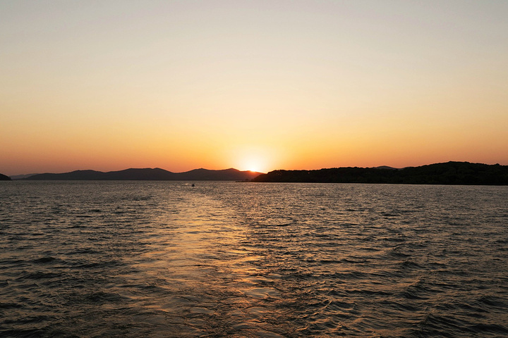 沿坡而行,午后3点抵达乘船码头,排队候船前往太湖仙岛。太湖仙岛原名三山,位于梅梁湖中。这里到处展示着古老的道教文化和神话色彩。搭乘末班船回程,恰逢夕阳西下,夕阳渐隐远山之下,余晖洒于湖面形成一道亮光,在水声与风声的交叠中,一切的烦恼开始变得虚无缥缈。