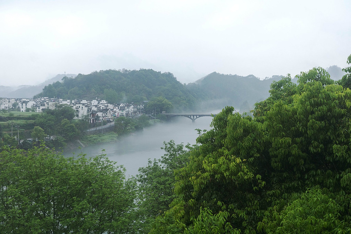 出李坑已是下午2点,四人决定只去江湾,毕竟是联票中唯一的一个五星级景点。沿途仿佛穿梭在一副水墨画中,烟雾缭绕,途径历史上被称为“千烟之地”的汪口,在观景台停车,雾从水面升起,梦被埋在江南烟雨中。