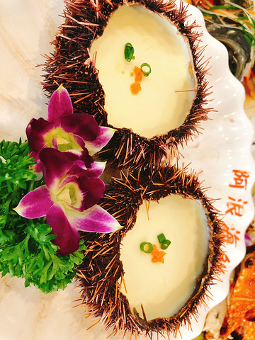 简单逛了逛决定去吃海鲜刚好大东海附近有一个南中国海鲜广场我们就去了,直奔攻略推荐的阿浪海鲜加工店,务很好可以给满分,主动帮忙烫碗筷,上菜也快,还经常帮忙倒骨碟。点了有点小多,简单讲几个#清蒸石斑鱼# 大概1斤左右活鱼,2个人吃这个大小的就够了。处理得很干净,鱼肉也细嫩好吃,口味咸淡掌握不错。#椒盐皮皮虾# 好吃是好吃,虾都是活的,肉很鲜甜,但实在放油太多,虾头都是油。#芒果螺# 第一次吃,小个头的先试试水。口感有点甜,是海鲜本身的甜,口感比常吃的花蛤要好一点。但是泥沙没有吐干净,吃到好几个有点沙,还有两三个没开口的。#蒜蓉蒸鲍鱼还有海胆# 撇开巨多蒜蓉量这件事,调味还可以。个头不是巨大的,但胜在新鲜,都和壳没分离,自己拿筷子戳戳戳也蛮有乐趣。#蒜蓉粉丝蒸扇贝# 终于见识到了本地的扇贝,壳是红的,个头也是很迷你,但和生蚝一样胜在新鲜。不过给我选的话还是去大连吃个爽吧。#四角豆# 当地特色的菜系,口感还不错。#椰子饭# 就是椰肉和糯米饭的组合,加了枸杞芝麻,够甜够糯。#清补凉# 其实是隔壁家的,椰子味道真的好浓,我到了这里几乎完全不想喝奶茶,好喝的饮料实在是太多了。
