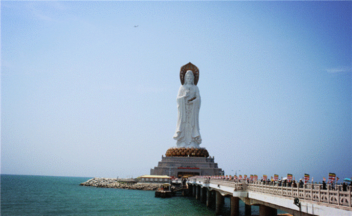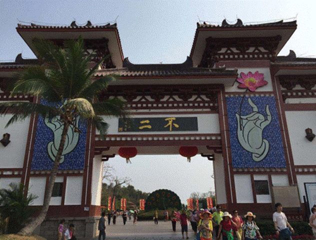 售票处大门的“不二法门”是您必观第一站,继续往前行可见金玉观音和长寿谷,走过湖区是慈航普渡园和吉祥如意园,直达南山寺,最后折回前往小月湾和海上观音。