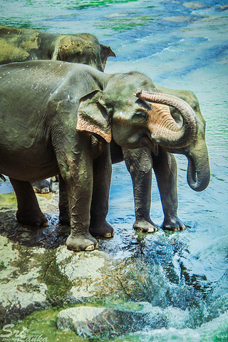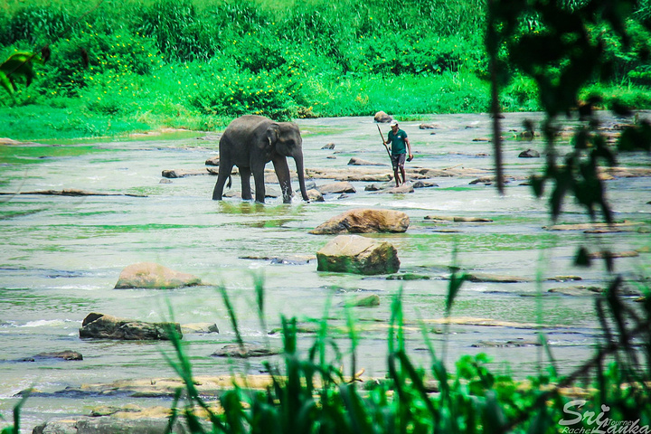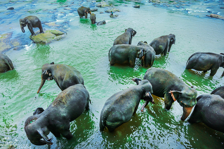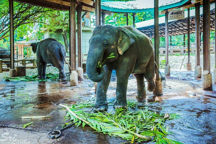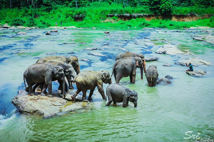 很多人可能会好奇,当我看到这儿大象的耳朵上有粉红色的斑点的时候,我也很好奇。原来斯里兰卡大象是全球大象家族中较为独特的分支,它们不如非洲大象块头大,耳朵尤其小。成年后,象耳朵、脸和鼻子周围的皮肤甚至还会显出一块与众不同的粉红色斑。这儿的大象见到游人也不怕生,旁若无人地打闹、进食。工作人员在河边,用毛刷为一些大象洗澡。
