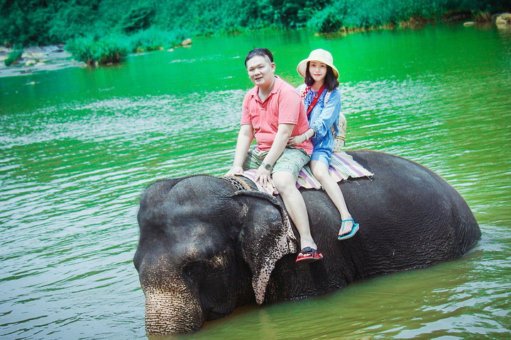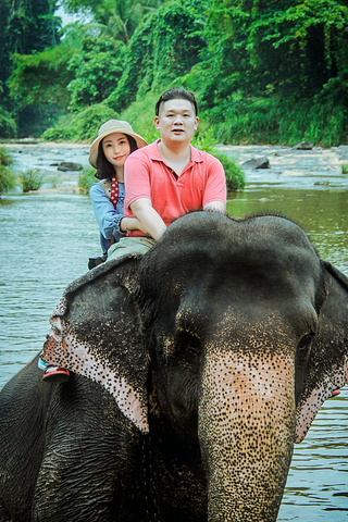 接着我们在河水当中淌着,大象不停的煽动耳朵,有时还会高举起它的鼻梁。如果你想湿身的话,可以告诉工作人员,他会让大象朝你喷水,很有趣。