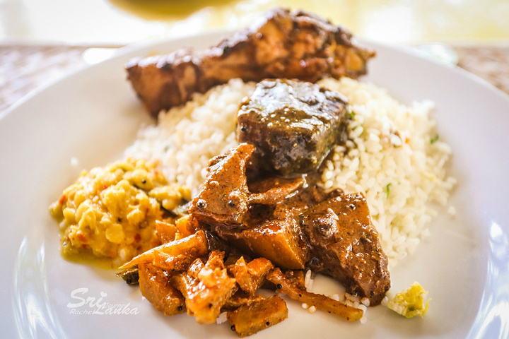 大概十一点半左右我们离开了大象孤儿院,然后前往锡吉里耶的狮子岩。大约在十二点半左右,我们提议想吃午餐了,司机在路途中随便找了一间餐厅,吃的是斯里兰卡特色的食物,但味道不是很好。大约40元人民币一个人,自助餐的形式,可食材不是很丰富,主要是味道很咸,而且很辣,所以我们基本没吃什么。司机也说了这家味道不是很好,而且表示很愧疚推荐错了,并向我们保证后面找的餐厅都会很好吃。