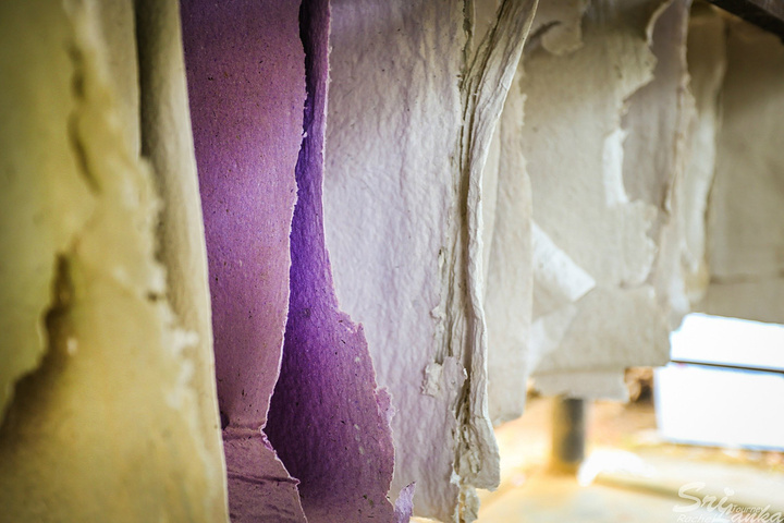 后面的工序就和我们古代四大发明之一的造纸术一样了,用纱网抄水,捞起纸浆之后再晾晒。