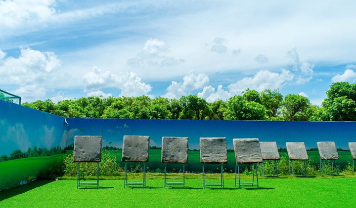 射箭场离恒大运动中心很近,有露天和有布幕的两个射箭场总共10多个靶位,尽管当天温度很高,射箭场的教练还是在射箭场认真地维护场地设备。