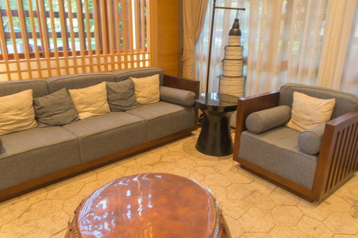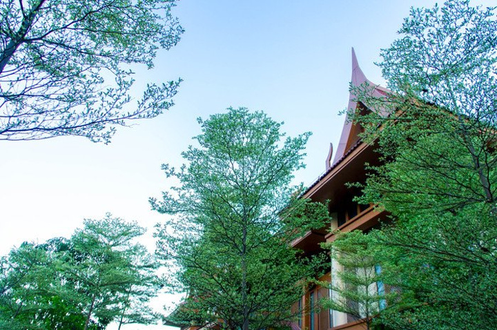 个人私以为最具特色就是泰式温泉馆了,穿过小树林,眼前一幢具有泰式风格为主调的建筑,据说里面是项目融合了现代香薰SPA的特色,同时引入了热带丛林风情的泰式鲜花浴、精油浴和草药熏蒸浴,与特色芳香SPA完美结合。