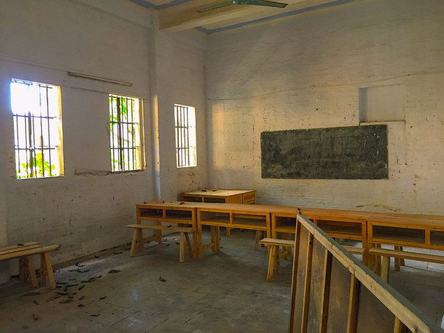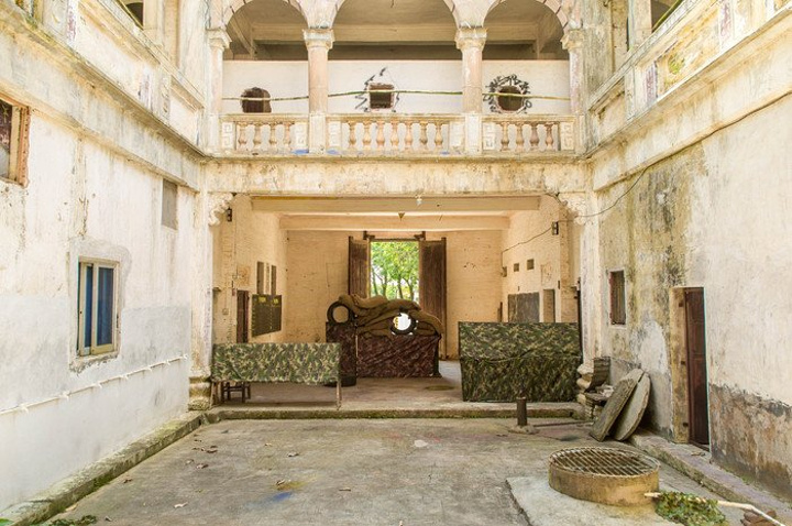 在售楼中心等待下午活动安排的接送车,下午的活动比较特别,是真人CS对抗,不过由于刚好有公司在团建,所以就遗憾地错过了,不过我们还是有幸地进入比赛场地实地参观,虽然说是真人CS,但是比赛场所确是一幢很有年代的古建筑,阳光透过天井散落在斑驳的墙壁上,透出一种淡淡的历史沧桑感,泛黄的墙壁上还有掉色的少先队徽,残旧的黑板上方是历史名人的画像,这些都透露出以前这是一座学堂,历史再往前推移,那干枯的古井,刻有族谱的开裂石碑,斑驳的青砖红瓦,则表明这里曾是一座富裕人家的古宅,只是沧海桑田,族人早已各奔东西,只能在有限的历史痕迹中找到这是一个名为 的故居。