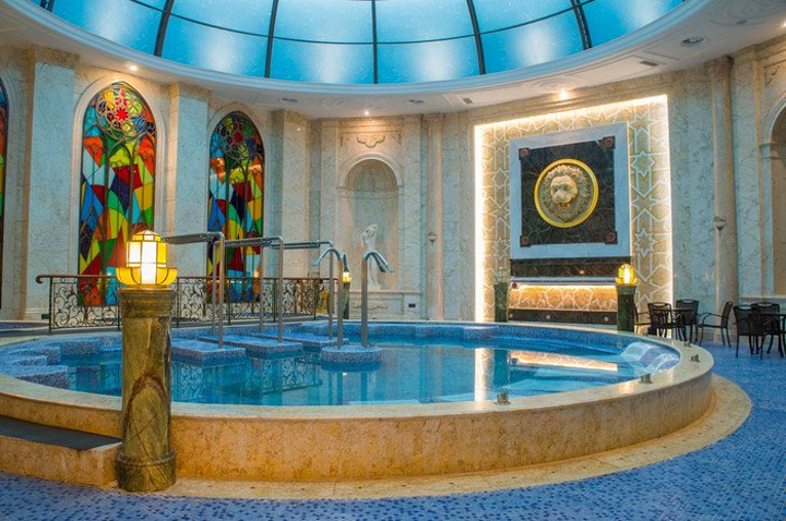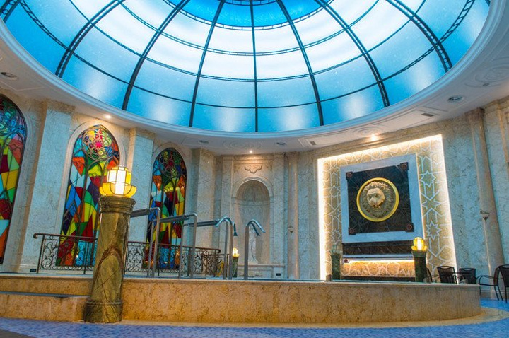 而土耳其馆则是以土耳其著名的棉花堡温泉为蓝本打造的极具伊斯兰风格的温泉馆,在这里有独特的鱼疗温泉,配合芳香湿蒸的特色理疗,让人身心舒畅的同时加速新城代谢,促进血液循环。