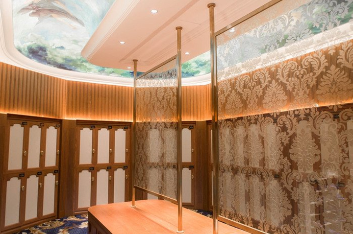 沿途我们还参观了尚未开放的泰国馆、芬兰馆和土耳其馆,如果说日式温泉馆的卖点是各具特色的绿茶汤、红酒汤、啤酒汤等天然温泉汤浴以及弥漫着北海道气息富含矿物质的岩盘浴的话,那么即将芬兰温泉馆的特色就是冰火交加的痛快体验,不但保留着拥有2000多年的芬兰浴精髓,更是结合芬兰当地建筑特色,让人仿佛置身在北欧神话的世界当中;
