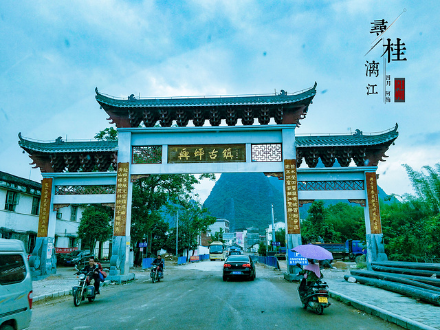 车子到达兴坪古镇,看见这个门再往前走就是漓江码头了