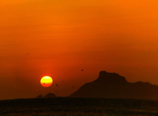 晕红色的光芒从西边地平线上照射而来,照射在这海中小岛上,此刻不论是这经历了千万年的彩石,还是远处砣矶岛百年的村子,看起来都特别有沧桑感。