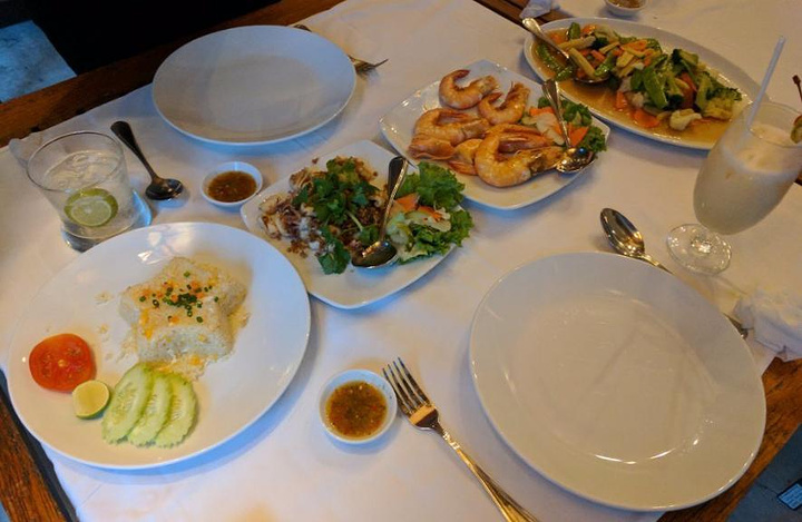 这是一家上过很多次电视的泰国明星高档餐馆,紧靠查龙码头。位置一流,环境一流,服务一流,味道也很不错。但这边儿的客人并不是很多,价格也有些贵。