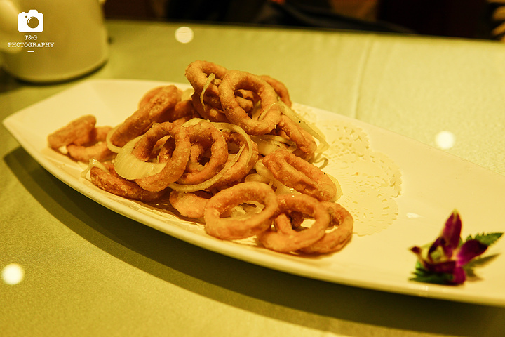 干煸鱿鱼圈和天津的干煸鱿鱼须口感很像,不过因为鱿鱼圈比鱿鱼须粗,所以更有嚼头