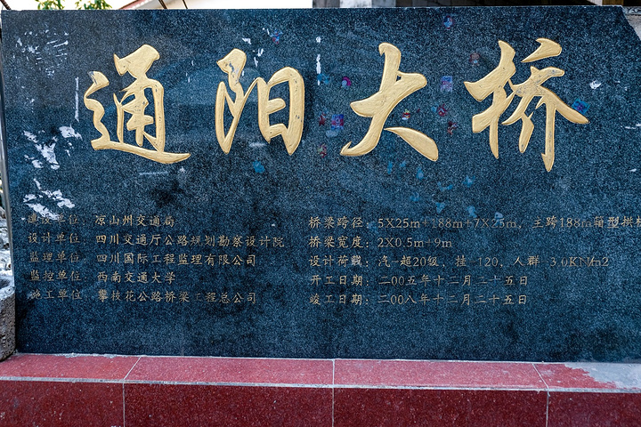 高大、雄伟、气派的金沙江通阳大桥,是连接四川省金阳县和昭阳区炎山乡。建成后的通阳大桥是联系川滇两岸人民的一座大桥,也是昭阳区和凉山州的一条重要出省通道。该桥全长507.825米,主桥净跨188米,桥梁宽10米,加引道总长1755.3千米,同类设计单拱跨度居亚洲第一。