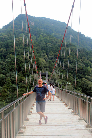 悬索桥横跨于将军河面,悬空险秀。若遇到云雾缭绕,走在悬索桥上,一定会感受到飞云之上的感觉。