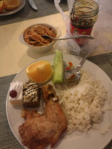 出行前就预料到埃及的食物会不合口味了,早早准备了老干妈、酸菜、剁辣椒、泡面等。真正尝到,埃及食物还是震惊到我了,不管埃及餐还是中餐,做法单一,花样不多,味道平平。很多时候,我都想冲厨师大喊,放开锅和勺,让我来!