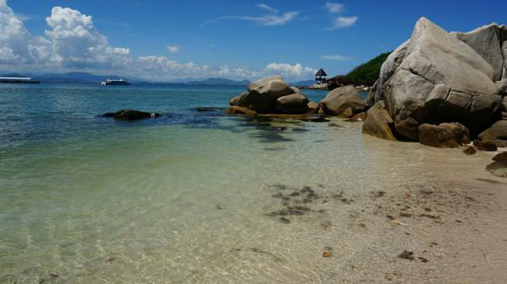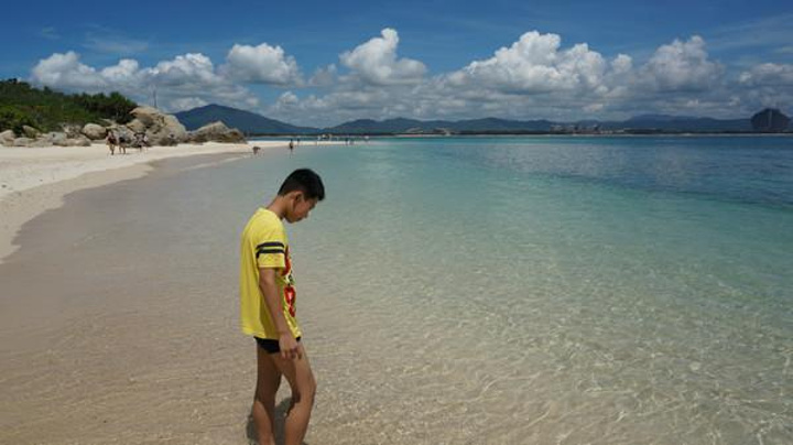 鸟巢度假酒店的泳池“蜈支洲岛”是我最喜欢的景点,这里的海美的那叫一个纯粹。从渡船码头走下去就是长长的沙滩。岛上的沙滩,砂质非常细,走在上面就像走在一块棉花上,柔软而舒适。放眼望去,清澈的海水拍打着银色的海岸,美得让你不愿意眨眼。这里的海并不是一味的蓝色,而是由透明到浅蓝再到深蓝色的渐变,最后在远处与天空融为一体。在这里拍照是不需要摄影技术的,你只要把镜头对准大海,按下快门,就是一张风景大片。向岛的腹地深入,是起伏不大的山丘,岛的另一面没有沙滩,全是临海的巨石和断崖,站在崖边看海,又是一番不同的景象,颇有些“乱石穿空,惊涛拍岸”的感觉。遥想当年苏东坡被贬到海南,不知可来过这里,如果他也在这里登高远望,其景色之瑰丽壮阔,较黄州赤壁,怕是又胜一筹了。