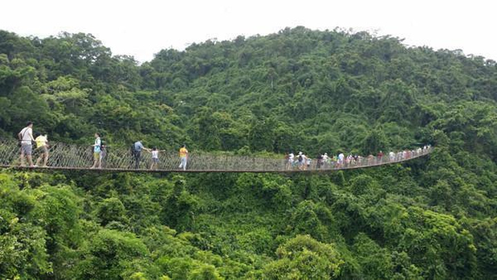 风景如画“热带天堂森林公园”现在是三亚很热门的景点,这都是电影的功劳。公园距亚龙湾约4公里,打车10元钱就到了。乘坐景区的电瓶车到达登山点,然后步行。走不多远就是有名的过江龙索桥,这里由于舒淇、葛优等一干明星走过,现在水涨船高,过桥还要收20元的过桥费。过了索桥不远就是《非诚勿扰2》的主要拍摄地“鸟巢度假酒店”,这个酒店的房间全是木屋,依山而建,丛林掩映,确实像是小鸟的巢穴,而远离人间的烟火。再往前走就主要是山景,和内地一般的山也差不多,只是这里的观景点都面朝大海、居高临下,多了一份海阔天空、凭海临风的意境。不过凭心而论,这里主要是因为电影而出名,就景色而言,都是人造景点,没有什么特别令人印象深刻的地方。据说,另外一个“呀诺达森林公园”虽然距离较远,就比这里更具原生态,可惜这次由于时间和行程安排上的问题,没能够去成,留下了一点小小的遗憾。