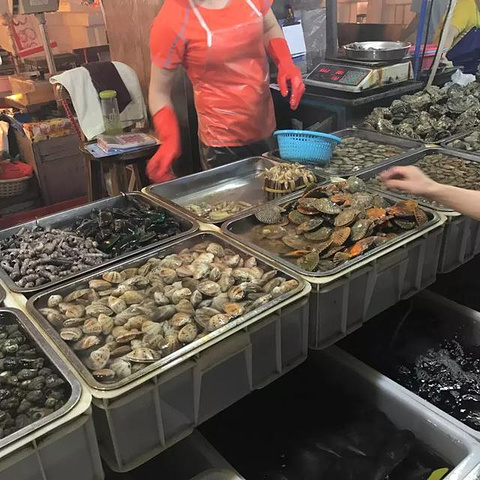 海鲜市场晚上周边会有好多摊主出来摆摊的,对了这里人流嘈杂请注意随身物品哦!据说这里有不少小偷会出没