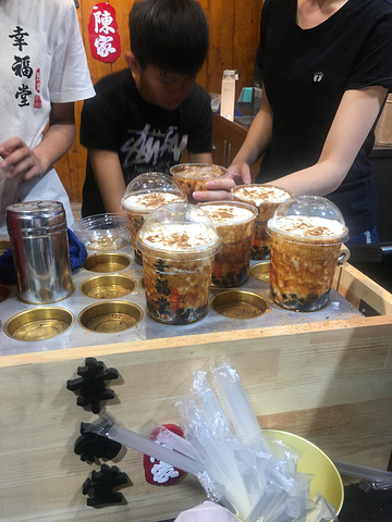 正想喝饮料时看到排长队的,有一口锅熬着红糖,把热的红糖和加了冰块的奶茶混合,搅拌均匀再喝,还比较特别吧,另外摊子上还弄了个抽签小游戏,让大家排队不那么无聊