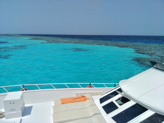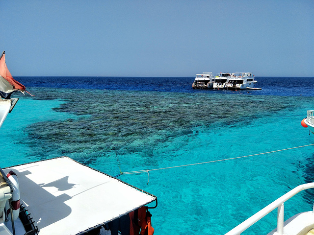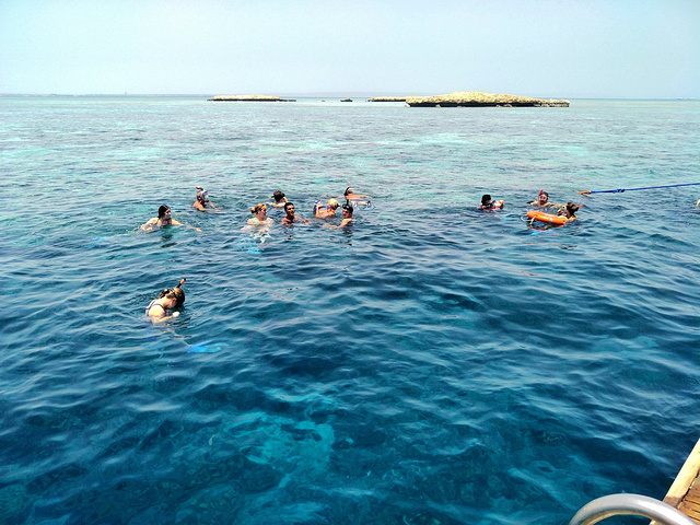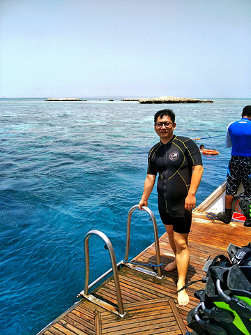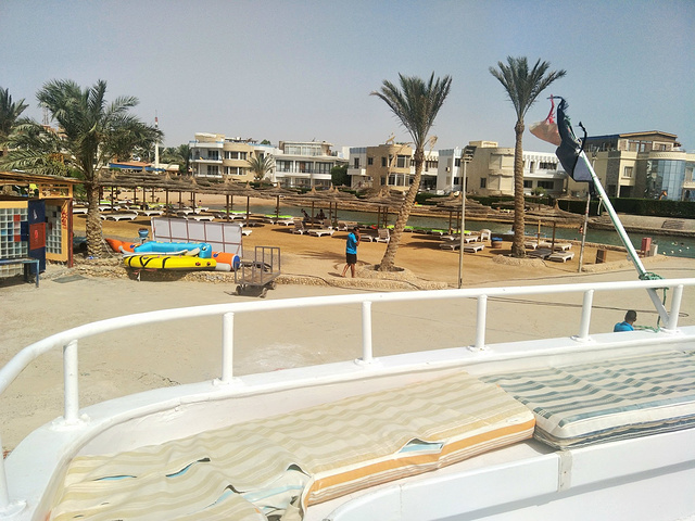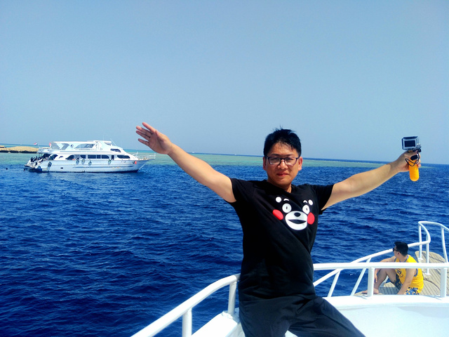 凌晨4点才到埃及的酒店,一路上看到的景色就是,房子有点破,卫生不太好,经济落后,但是自然风光很好。我们的导游叫阿龙,还是挺有意思的。听他自己吹嘘说在埃及导游里他很有名气。在酒店休息了一会,因为行程里说今天是自由活动的时间,所以我们组织了5个人在淘宝上报了红海一日游,700多1个人,行程是上午深潜2回、浮潜2回,午饭在船上吃。下午在沙漠中冲沙。因为非常商业化了,我觉得安排的还是非常好玩的。不过阿龙还是挺郁闷的没在他那报名。
