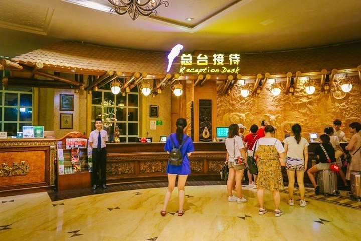 在水世界玩到闭园才出来,没有选择在乐园的更衣室里洗浴换衣服,而是回到了我们今晚入住的酒店。杭州第一世界大酒店是宋城集团旗下长三角地区的五星级东南亚热带雨林主题酒店,同时也是亲子主题酒店,距离水世界入口步行仅有3分钟,非常的方便。