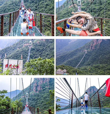 在红石林景区,除了沟壑纵横的奇峰异石,最惹人的便是那号称世界上最大玻璃环廊,为了一睹它的风韵,必须要前去体验一番。红石林景区的高空玻璃环廊——“天空漫步”,桥面采用150块三层钢化夹胶玻璃铺设,距离峡谷地面360米,环廊伸出悬崖30米,比著名的美国科罗拉多大峡谷号称“世界第八大奇迹”的玻璃环廊还长出近9米。