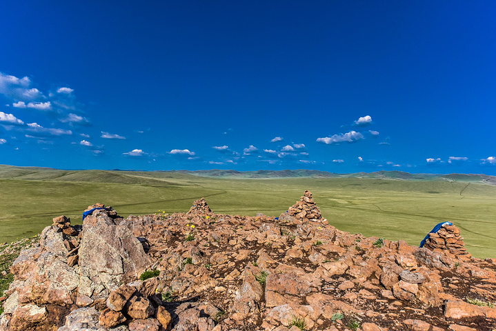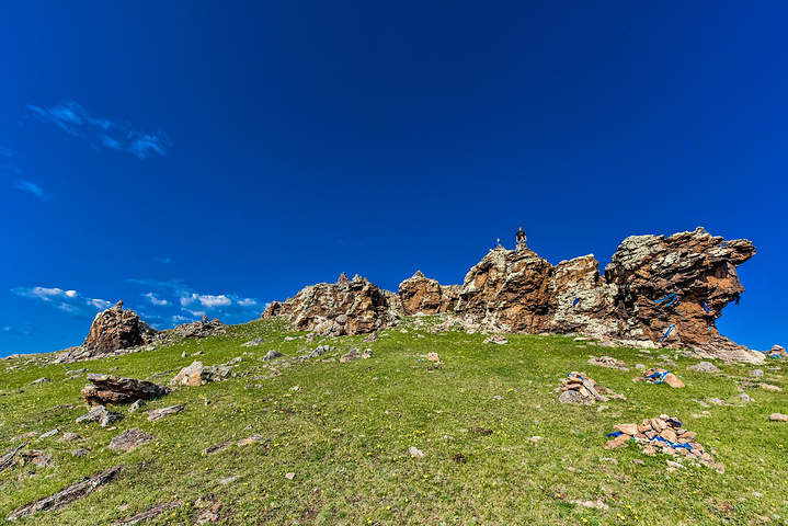 登上这石头形成的小型山之后,可以让整个眼界变得更加开阔。整个草原的景色尽收眼底。这个时候有一种君主为我的大气气概油然而生了。