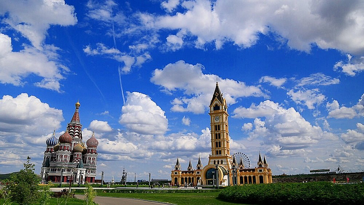 套娃广场我们没有去,路过的时候能看到它,因为有几个超大的套娃拔地而起,巨显眼,感觉雷雷的。