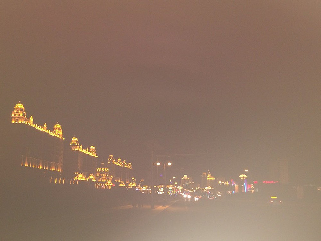 满洲里的建筑都有一个俄式的屋顶,点上灯看起来非常奢华,但也免不了稍显浮夸。老板带我们去了内蒙古大学,为什么要去那儿呢?老板说从那里的一个掉头,我们能看到比教堂更美的灯火。