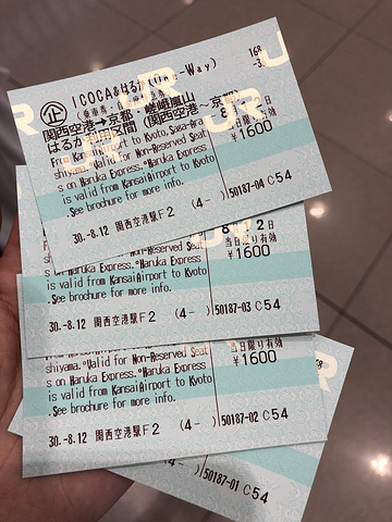 到了JR车站,要先找到"绿色窗口"(服务时间:5点30分~23点),这里就是JR的人工售票处。你既可以当场拿着申请人的护照,填写好表格,购买ICOCA&Haruka套票,(如果你本身有ICOCA卡,那么可以单买Haruka);你也可以提前在官网[http://www.westjr.co.jp/global/sc/ticket/icoca-haruka/]进行预订,把回执邮件打印出来携带,在售票处交给工作人员查看后,出示护照和ICOCA卡,付款取票即可。
