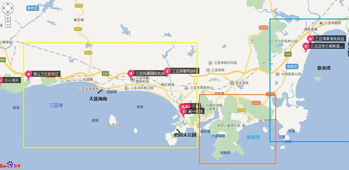 6月初去的三亚,避开假期去的,4天4夜,时间不是很多所以很多地方都没去,整体玩的比较轻松吧,有玩有休息的我觉得挺好,但是遗憾的是没去蜈支洲岛和出海去玩,下次再会。这个是大概一些景点的位置,可以根据自己要去的景点安排下住宿的地方来自游记三亚自由行