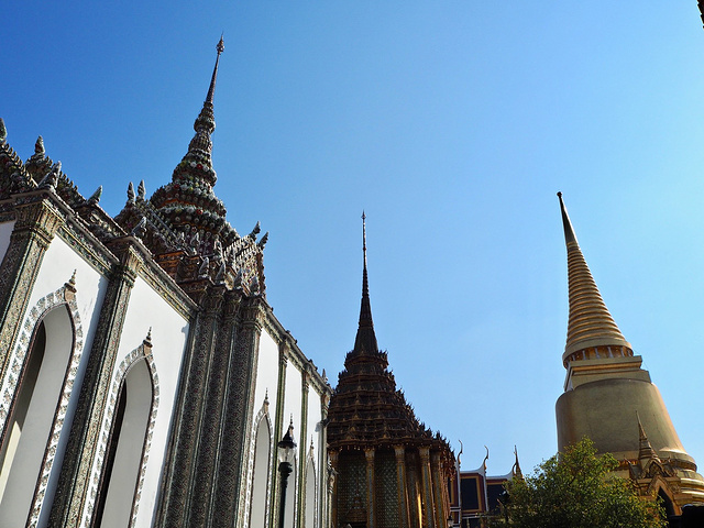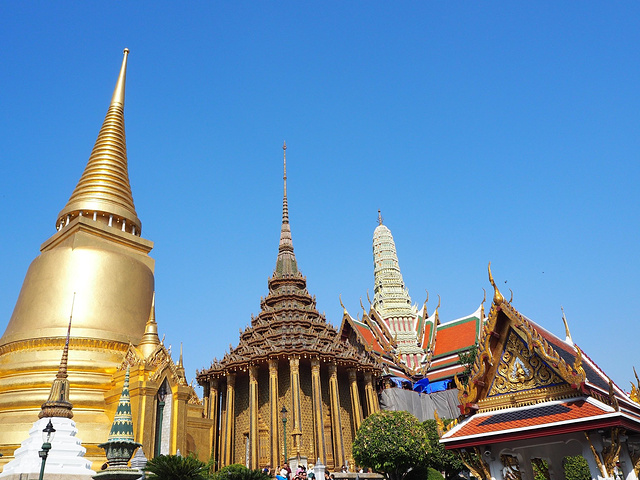 大皇宫(Grand Pal ace ,又名大王宫),位于 曼谷 市中心,紧偎湄南河,是 曼谷 王朝的象征,有点像我们的故宫一样,这里是 泰国 曼谷 王朝第一世于1782年登基后至八世的王宫,是历代王宫保存最完美、最壮观、规模最大、最有民族特色的王宫,现仍用于举行加冕典礼、宫廷庆祝等仪式活动。