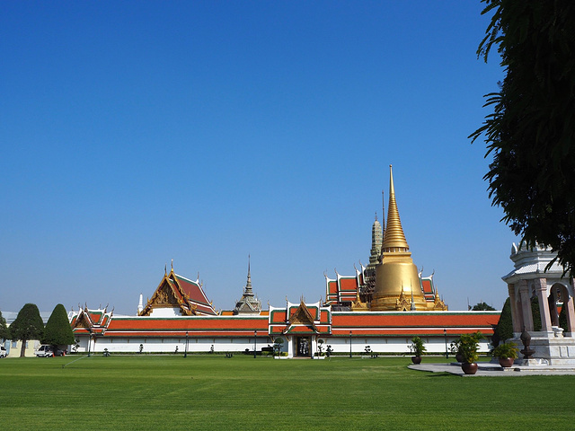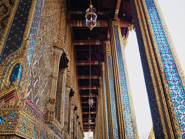 一进入大皇宫就可以看到的大雄宝殿其实就是玉佛寺,连回廊都十分华丽。